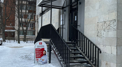 Вход в бизнес центр с торца, примерно посередине - Высокое крыльцо.