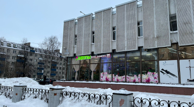 Вход со стороны цветочного магазина, если стоять лицом к зданию- по левую руку.